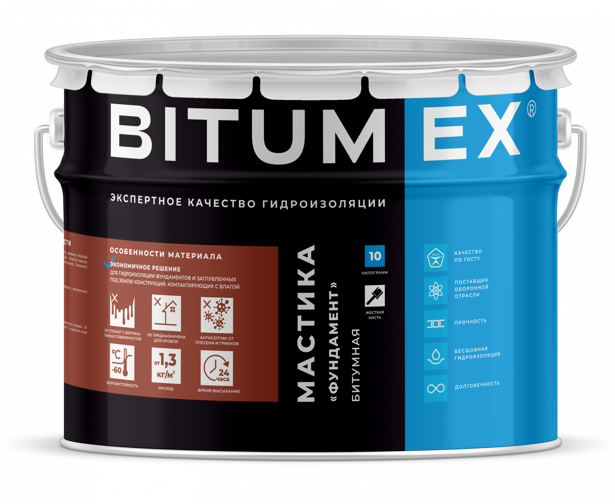 Мастика полимерно-битумная кровельная и гидроизоляционная BITUMEX STANDART 10л/10кг ГОСТ 30693-2000