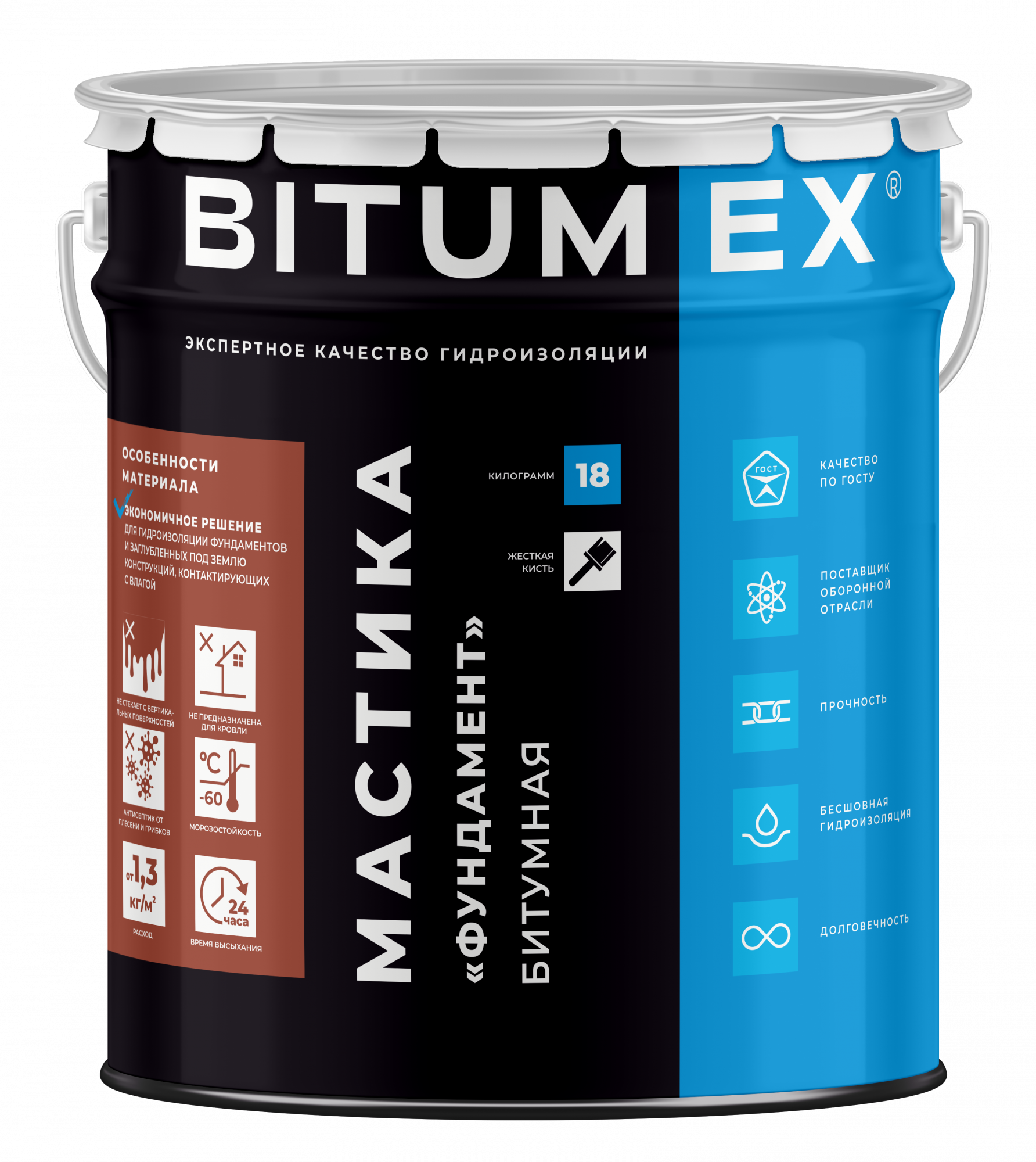 Мастика полимерно-битумная кровельная и гидроизоляционная BITUMEX STANDART 18л/18кг ГОСТ 30693-2000